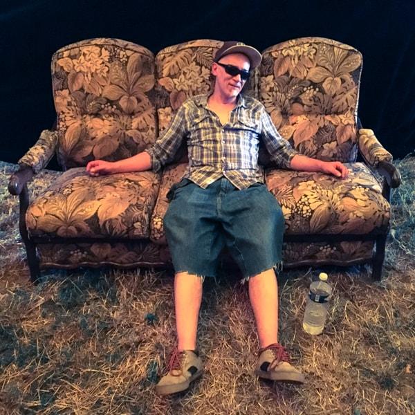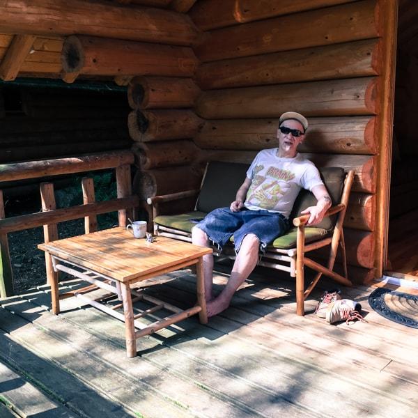 Jean Mi dans sa cabane en rondins