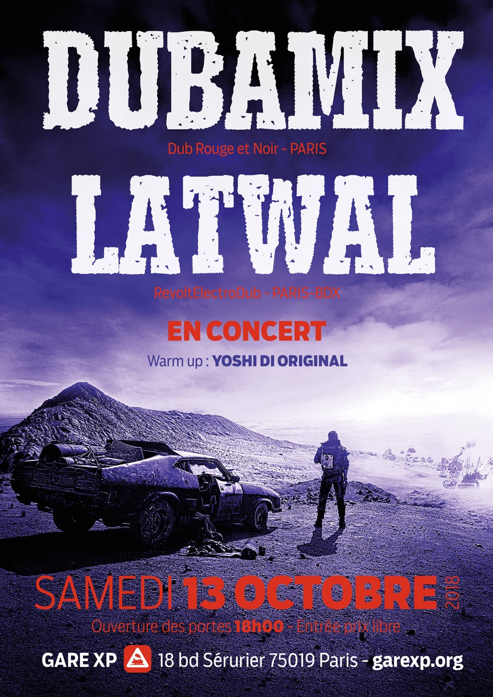 La Gare XP avec Dubamix Le Samedi13 Octobre 2018 • 20:00 La gare XP 15 Boulevard de Chicago 21000 ParisPlus d'infos | Article précédent Les nuits du 4 Août - Orgelet Article suivant | Soutien aux réfugiés - Les Tanneries